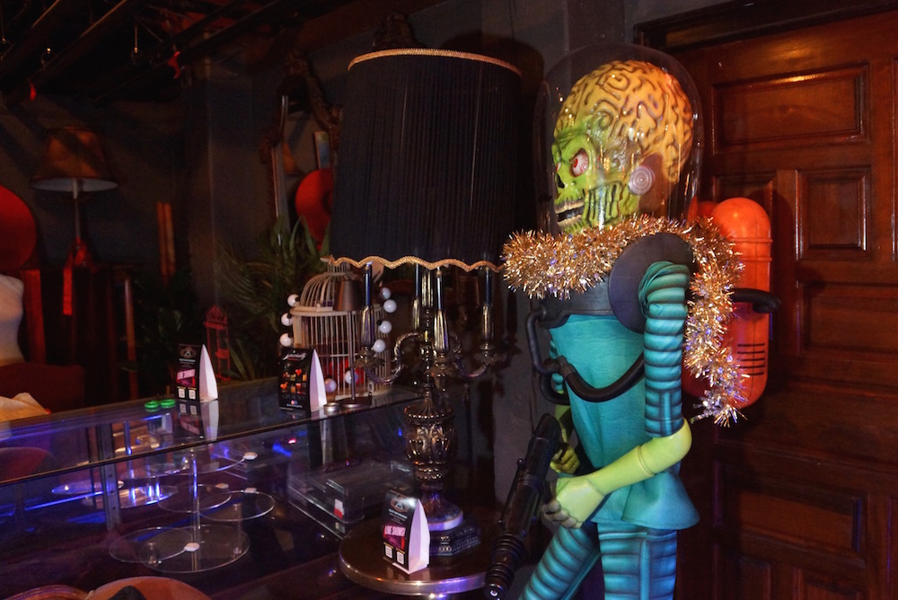 Moody lighting and vintage decor lend a sexy, mysterious vibe to a venue clearly born of an artist’s heart. That artist is founder Echo, a classically trained opera singer and fine artist that opened the club as a BYO in 2023, and then later a full bar in April 2025. She has a BFA from the Philadelphia Academy of Fine Arts and a MFA from the New York Academy of Art. Echo says about the space: